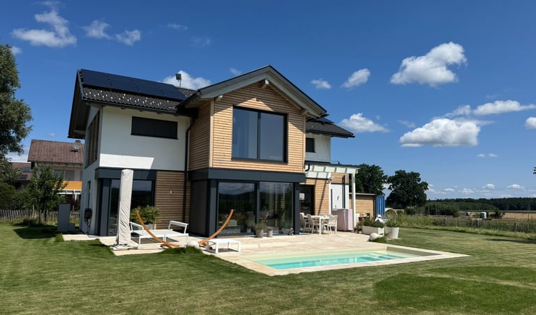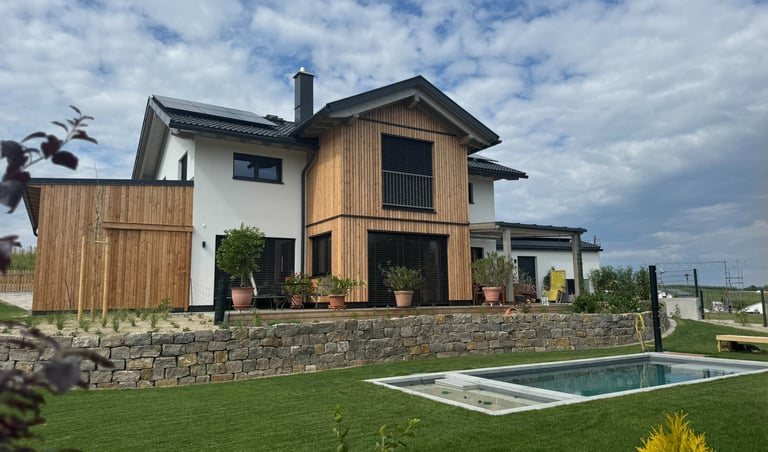 Von der ersten Idee bis zur Fertigstellung unseres Hauses haben wir uns in allen Phasen bestens betreut gefühlt. Besonders beeindruckt hat uns die klare Ausrichtung auf Nachhaltigkeit und die kreative Umsetzung unserer Wünsche. Die großzügigen Glasfronten, die offene Raumgestaltung und die harmonische Materialwahl machen unser Zuhause nicht nur modern, sondern auch unglaublich wohnlich.