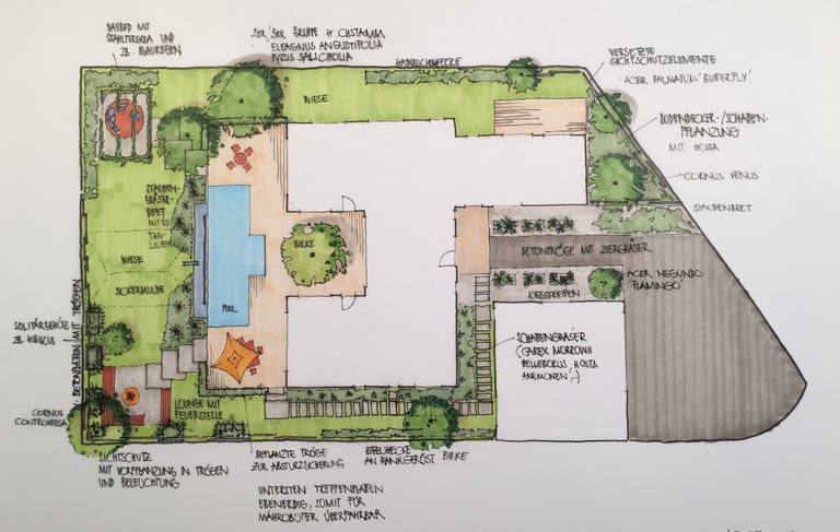 Ein Haus endet nicht an der Haustür – auch Themen wie Kellerbau, Geländemodellierung und die Planung der Außenanlagen gehören zu einer durchdachten Gesamtplanung. Ich berate meine Kundinnen und Kunden umfassend in diesen Bereichen und arbeite dabei mit erfahrenen Partnern zusammen, um ein stimmiges Gesamtbild von Anfang an zu gestalten.